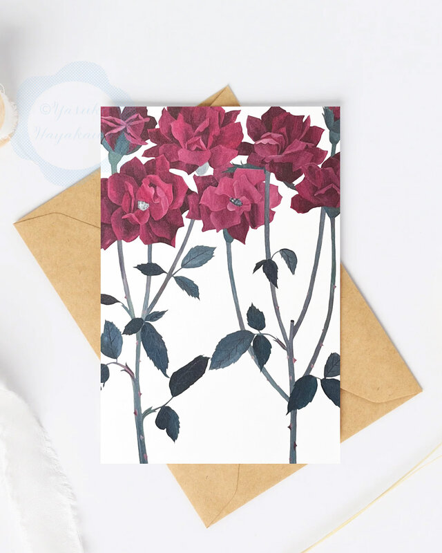 (102)ラズベリーピンクの薔薇の花 ポストカード 3枚セット