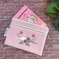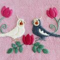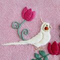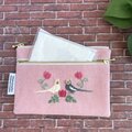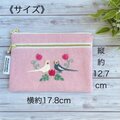 オカメインコが向かい合う姿を刺繍した、ダブルファスナーのポーチです。