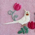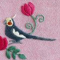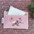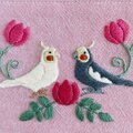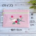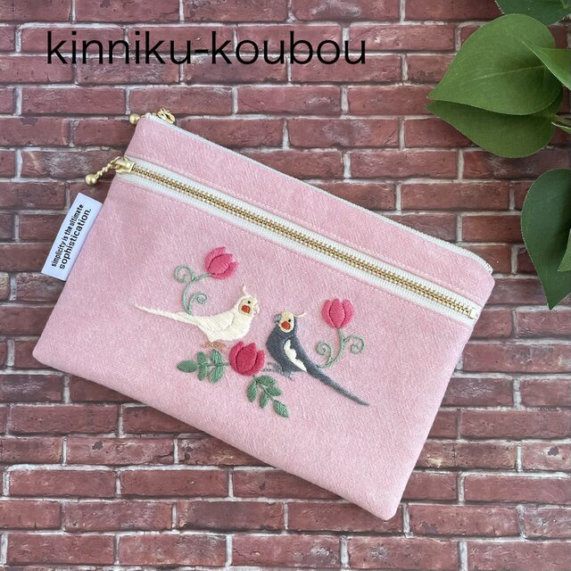 オカメインコが向かい合う姿を刺繍した、ダブルファスナーのポーチです。