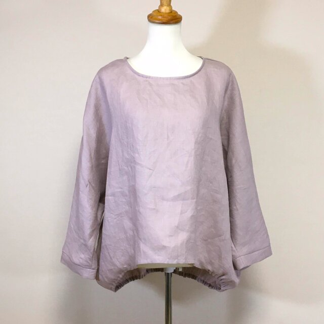 カラーリネン◆バルーンプルオーバー 長袖◆オールドモーブ◆フリーサイズ(中厚、リネン100%)