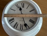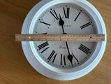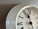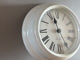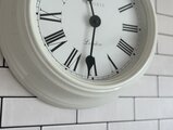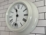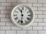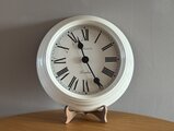 シンプルなホワイトフレームにローマ数字の文字盤が美しく、まるでヨーロッパのアンティーク時計のような上品な雰囲気があります。