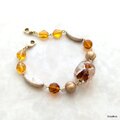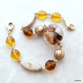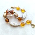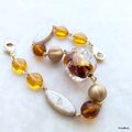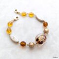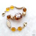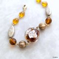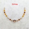 メインの両端はマットゴールドのメロン玉で続けてブラウンとハニーイエローのチェコビーズ。