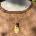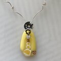 歯車模様のガラス、銀の歯車、伸びたバネみたいなチェーン、と、遊び心のある楽しいペンダントです。