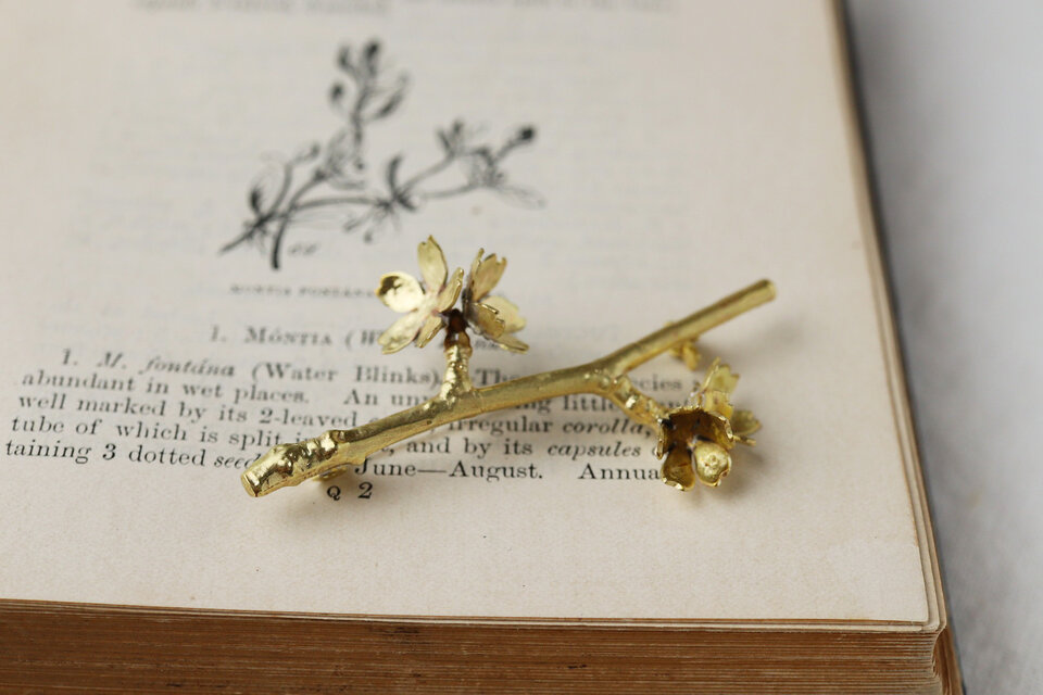 桜の小枝を模ったブローチに