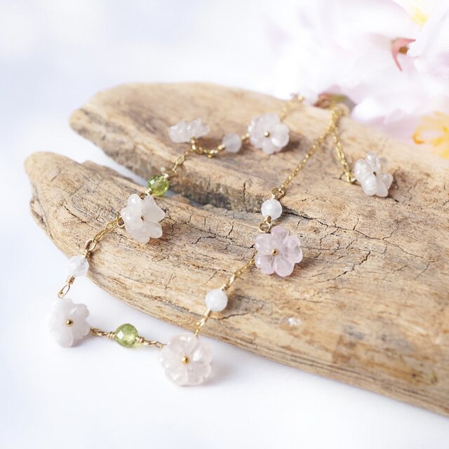 淡いピンクのモルガナイトでふわっとした桜を。