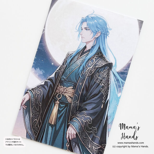 ⭐️《月の守護神 ツクヨミ》☘️クールで 神々しい 月読尊 月詠 日本神話 スマホやお財布に入る 開運 イラスト アート カード プラスチック製です♪