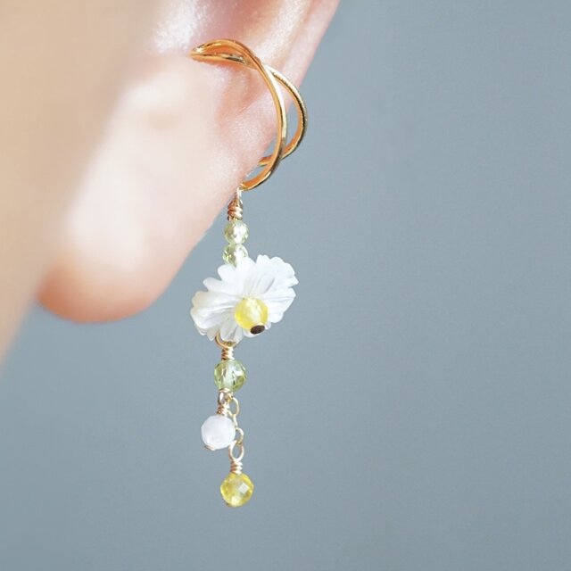 「マーガレット」天然石 イヤーカフ 片耳 ペリドット ムーンストーン 誕生石 春 ホワイト 母の日 ギフト プレゼント