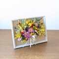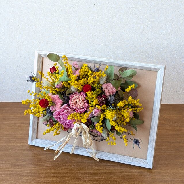 A4サイズのフレームに、ドライフラワーでバスケットアレジを作りました。