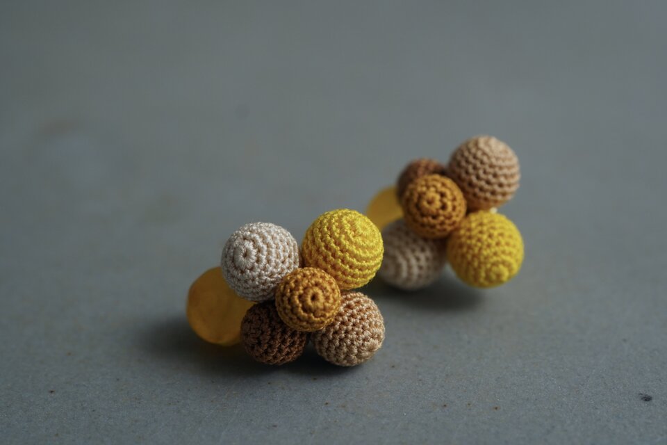鮮やかなイエロー、からし、クリーム、ベージュ、キャメルの粒