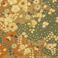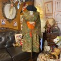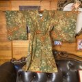 着物リメイク ミニミディワンピース/ドレス/洗える化繊 名古屋帯 苔色の深淵 × 密集する花々のパルス KW-1329