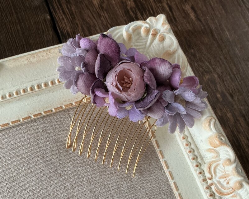 ミニバラを中心に様々な小花でアレンジした小さめのコームですので、お子様にもお使いいただけます。