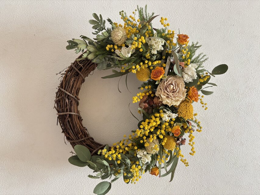 外は寒いですが、春色のリースを眺めているとうきうきと心が弾みます。 いつもながらすてきなリースで、周囲がぱっと明るくなりました。 すてきな作品をありがとうございました。
