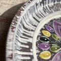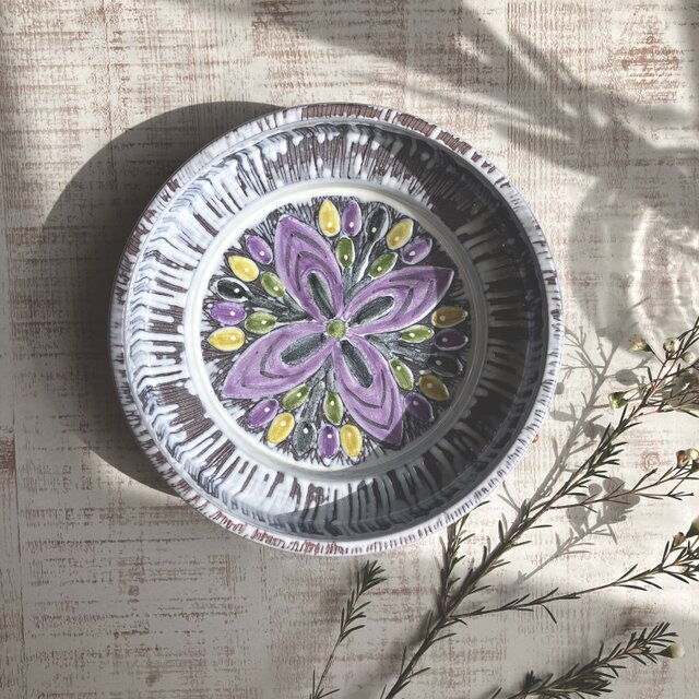 ケーキ皿を探していてこちらを見つけました。希望のサイズよりもひとまわりほど小さかったですが、デザインや配色など一目で心惹かれてしまいました。 我が家でいちばんのお気に入りのお皿になりそうです。大切にします。 素敵なご縁をいただきありがとうございました。