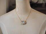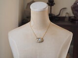 *留め具(カニカン)、チェーン、アジャスター、飾り金具、石を留めた金属はブラス(真鍮)です。