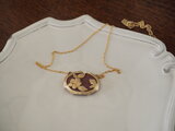 次は、和名を「薔薇輝石」という素敵な名前を持つロードナイトの登場です。庭にある一重のバラのモチーフで仮面を作ってみました。小さいけれどとてもエレガントな作品です。