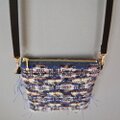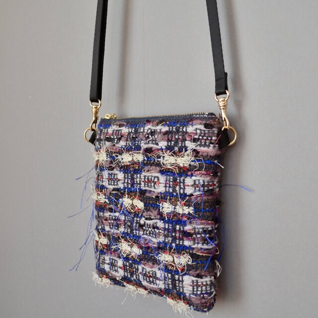 変わり糸を効果的使用したスマホショルダーです。個性的なテクスチャーがお洋服の楽しいワンポイントになりそうです。