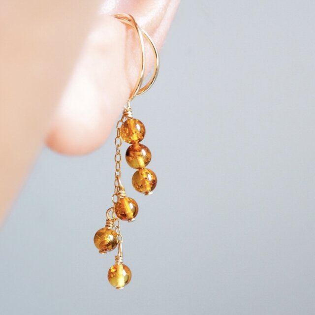 「みたらし団子」天然石 イヤーカフ アンバー 琥珀 和菓子 着物 和装 母の日 ユニーク ギフト プレゼント