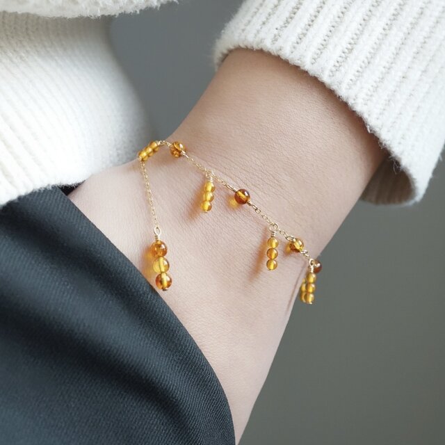 「みたらし団子」天然石 ブレスレット アンバー 琥珀 和菓子 母の日 ギフト プレゼント 14kgf 金属アレルギー対応