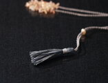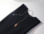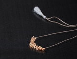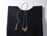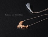 アネモネカラー・天然石と絹のネックレスパールの位置によって、長さはもちろんトップの形を変えられるのがユニークで変化が楽しめて嬉しいです。 以前ネックレスを落としてしまったことがあるので、被り式のネックレスは安心して身につけられて助かります。 ネック部分やタッセルがシルクで、汗ばむ季節にも肌あたりが柔らかそうで嬉しいです。トップに合わせたタッセルの色合いも好きです。 素敵な作品をありがとうございました!