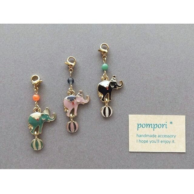 サーカスの玉乗り象さんチャームです。ボール部分がゆらゆらします。