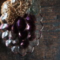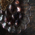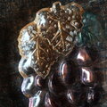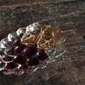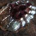 葡萄とリーフ◆カラフルな色味。 硝子変形皿 プレスガラス 昭和レトロ 古民家 昭和後期