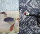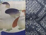 手絞りの正絹の羽織と、女の子の着物についていたペンギンの絵柄を組み合わせました。