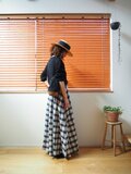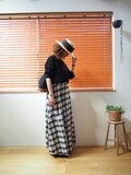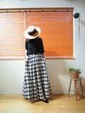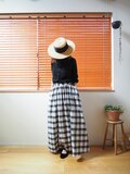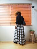 【Pre-order】India Madras check long skirt BLACK