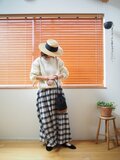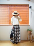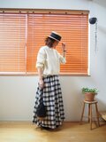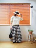 ・シンプルなトップスと合わせるだけで、チェック柄がコーディネートのアクセントに