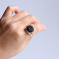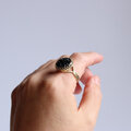指の節が太くなり新しい指輪を買いました。 海外の素敵なボタン。 本当に綺麗で(サイトの写真よりも)とても嬉しい気持ちです。 希望のサイズを作ってくださった事も嬉しかったです。 また違う色をmatatakiさんで購入したいと思います。
