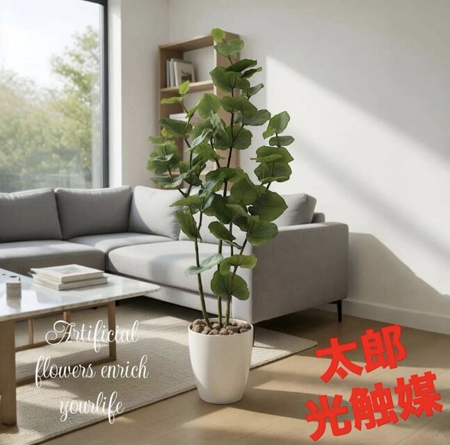 人工観葉植物に光触媒加工した場合、半永久的に光触媒の働きは持続します。光触媒(酸化チタン)そのものは劣化したり消耗することが無いからです。