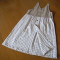 後ろをボタンで留める形のエプロンワンピースです。