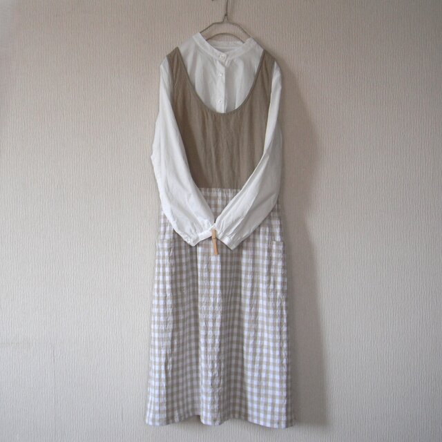 リネンのエプロンワンピース 薄モカ