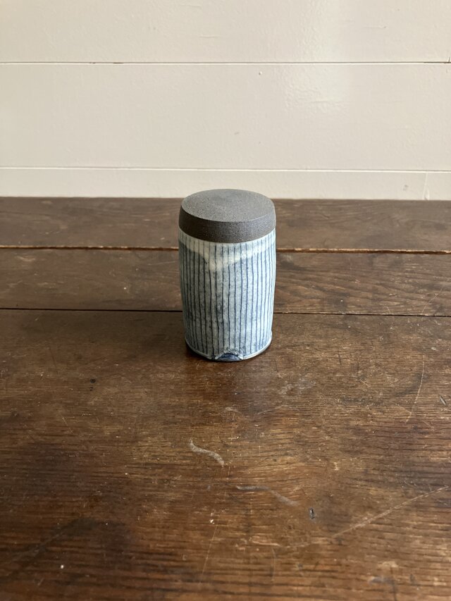 蓋が焼締で本体はインディゴ。