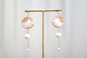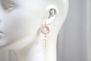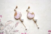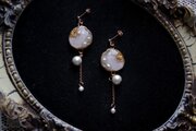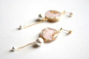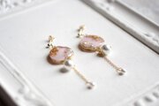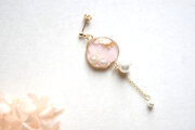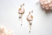レジンアート スライスアゲートとコットンパールのピアス〈抱擁〉
