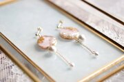大小二粒のコットンパールを吊るして、高級感に可憐さを添えたアクセサリーに仕上げました。
