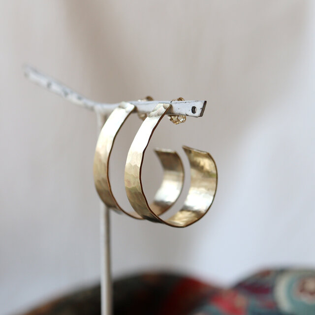 真鍮のあたたかい質感をいかした、シンプルなフープピアス。