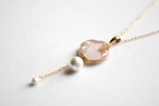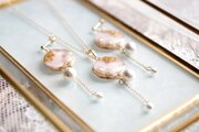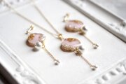 大小二粒のコットンパールを吊るして、高級感に可憐さを添えたアクセサリーに仕上げました。
