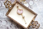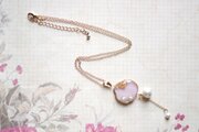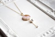 レジンアート スライスアゲートとコットンパールのペンダント〈抱擁〉