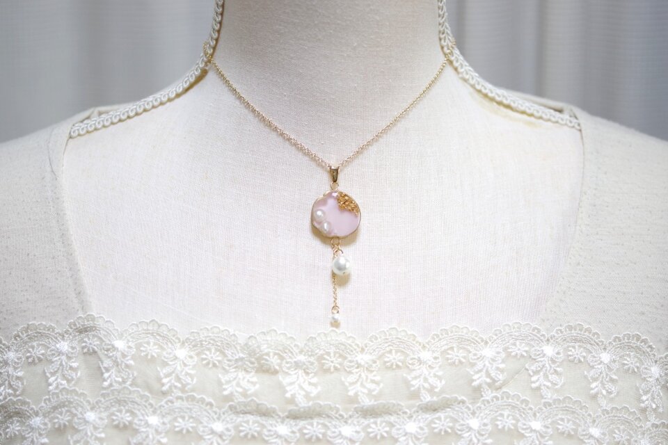 淡いピンクのレジンが春にぴったり。