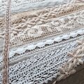 14種類のフランスアンティークレースをミシンと手縫いで縫い付けました。