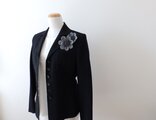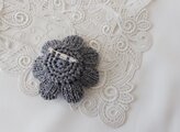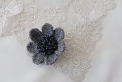 濃グレーのコットンテープを花びら一枚一枚編み機で編んで作った花のブローチです。