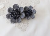 花芯には黒・グレー・など様々なビーズをびっしりとパヴェ風に刺繍しました。