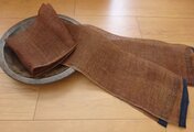 柿渋でよい色に染まった麻の蚊帳から仕立てたスカーフです。