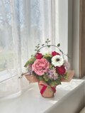 ラナンキュラスと深いピンクのバラを贅沢に使用した