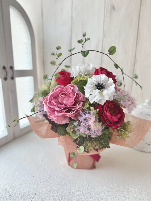 このアレンジはアーティフィシャルフラワーを使用しており