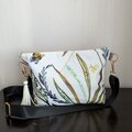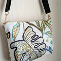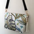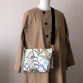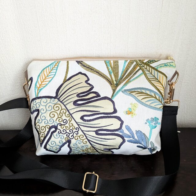 フランス製のコットンリネンに、美しい刺繍が施された生地を使った斜め掛けバッグです。