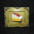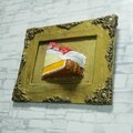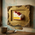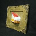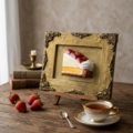 特筆すべきは、タルト生地のサクサク感、とろけるクリーム、そして宝石のように輝く苺です。ライトゴールドのアンティーク調額縁が、この作品をさらに特別なものへと昇華させています。日常の中での「小さな幸せ」を形にしたこの作品は、贅沢な彩りをお客様の空間に添えてくれることでしょう。「ご褒美の、その先へ」。このタイトルには、忙しい毎日の中で求める「小さな幸せ」が込められています。