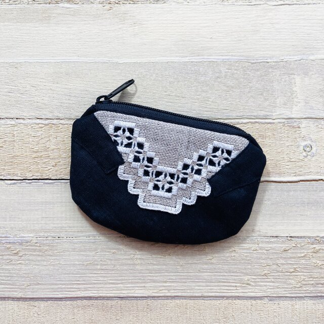 ハーダンガー刺繍ミニポーチ⚫︎z383