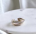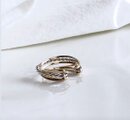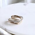 4本のゴールドのラインと、ツイストされたシルバーのラインが1本輝く5連のオープンリング。
