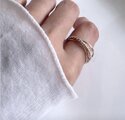 ゴールドシルバーミックスなので、他のアクセサリーとのコーディネートがしやすい指輪です。